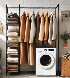 - 울 및 니트 소재: 미지근한 물에 손세탁하거나, 울 전용 세제를 사용하여 세탁기에서 약하게 돌립니다.