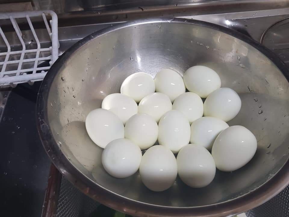 - 삶은 계란을 찬물에 바로 넣어 식힌 후 껍질을 벗깁니다.