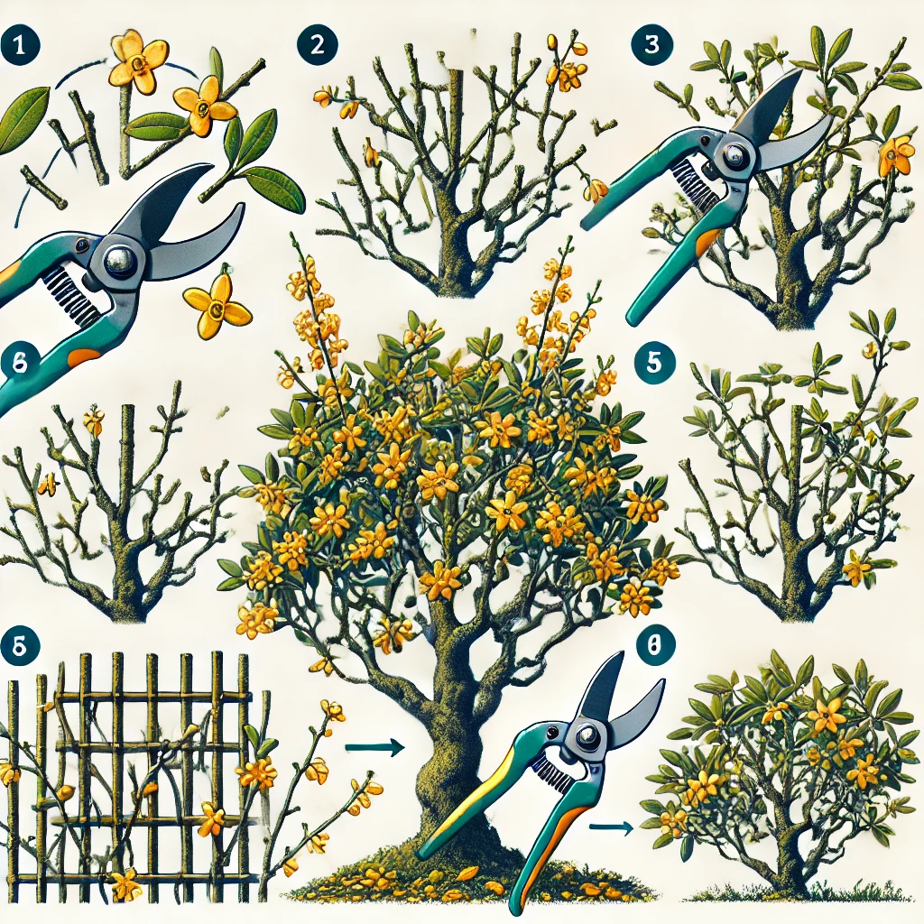 금목서는 일정한 모양을 유지하기 위해 가지치기가 필요합니다. 가지치기는 봄에 새로운 성장이 시작되기 전에 하는 것이 좋습니다. 과도한 가지는 제거하여 통풍을 원활하게 해줍니다.