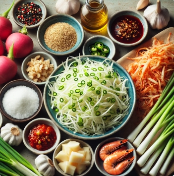 - 무: 무는 김치의 아삭한 식감을 담당하며, 김치의 전반적인 맛을 시원하고 상쾌하게 만들어줍니다. 잘 절여진 배추와 어우러지며 김치의 중심 역할을 합니다.