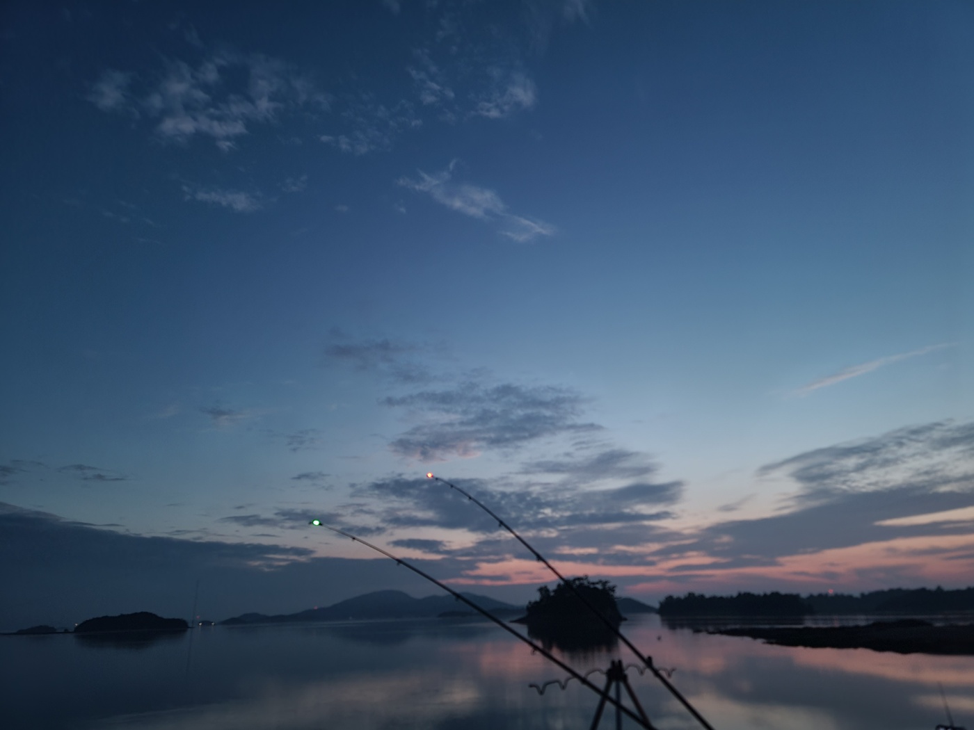 저녁노을이 진 후, 낚시대를 멀리 던지며 본격적인 낚시를 시작합니다. 이때의 낚시는 낮과 다른 몇 가지 특징이 있습니다.