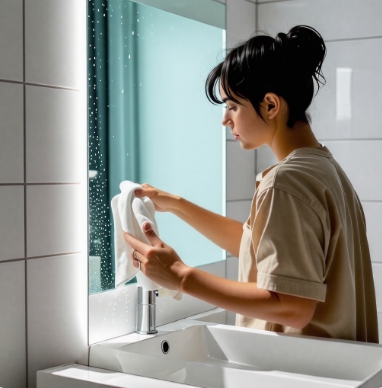 - 수건으로 닦기: 샤워 후 거울에 물방울이 맺히기 전에 마른 수건으로 거울을 한 번 닦아주세요. 이는 물때가 생기는 것을 막아줍니다.