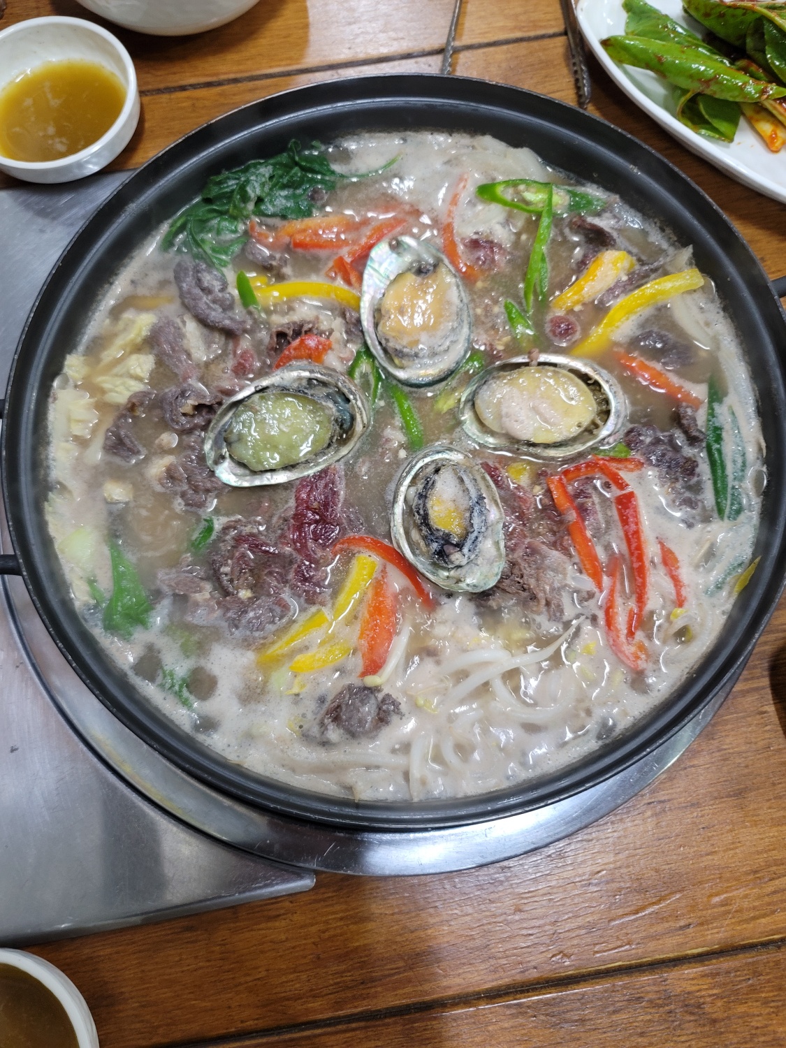 전복소불고기는 한국 전통 요리의 아름다움과 현대적인 입맛을 만족시키는 최고의 선택이었습니다.. 이 요리는 전복의 고소함과 소고기 불고기의 담백한 맛이 어우러져, 고급스러운 음식 경험을 제공했고, 전복의 부드럽고 쫄깃한 식감이 입안에서 녹아들며, 달콤하고 진한 소스와의 조화가 완벽하게 이루어졌습니다.