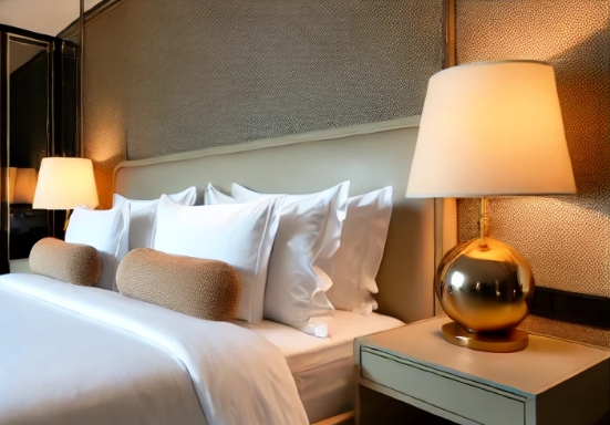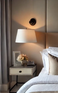 조명은 침실의 분위기를 완성하는 중요한 요소입니다. 간접 조명, 무드등을 활용해 따뜻하고 부드러운 빛을 연출하세요. 특히 침대 옆의 벽등이나 스탠드 조명은 편안하면서도 우아한 느낌을 줍니다. 고급 호텔의 침실은 항상 은은하고 따뜻한 조명으로 둘러싸여 있는데, 이는 조명의 강도를 낮추고 눈의 피로를 줄여 주는 역할을 합니다.